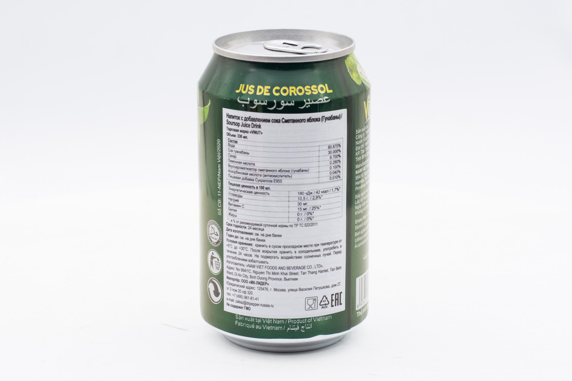Напиток сокосодержащий Vinut с соком сметанного яблока 330мл49,99 руб. за штуку (в упак. 24 шт.) |